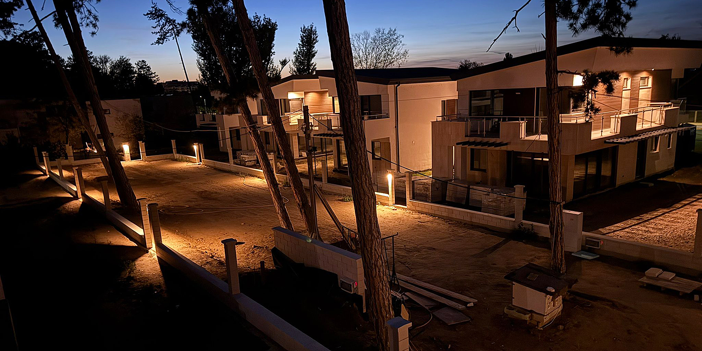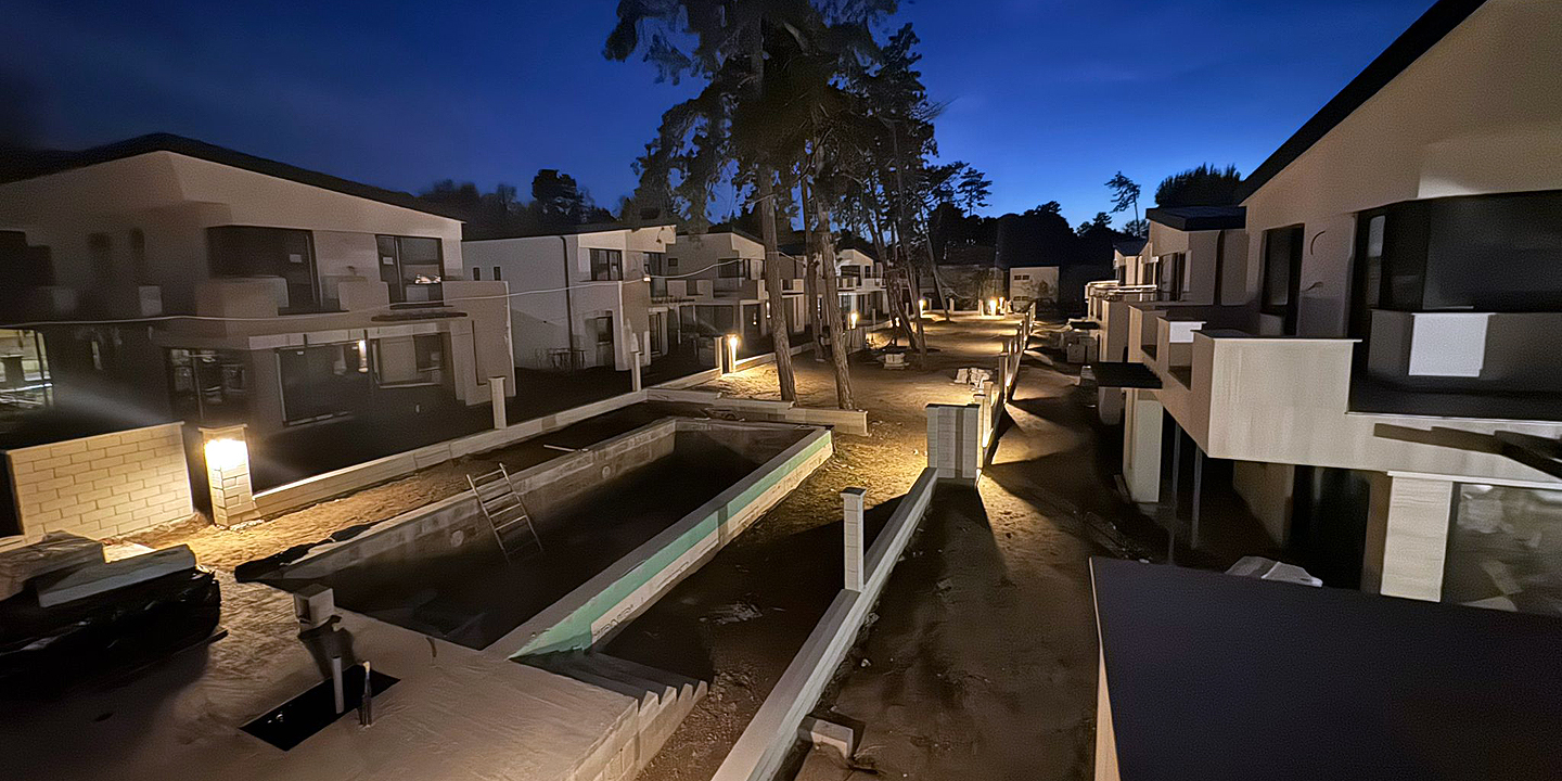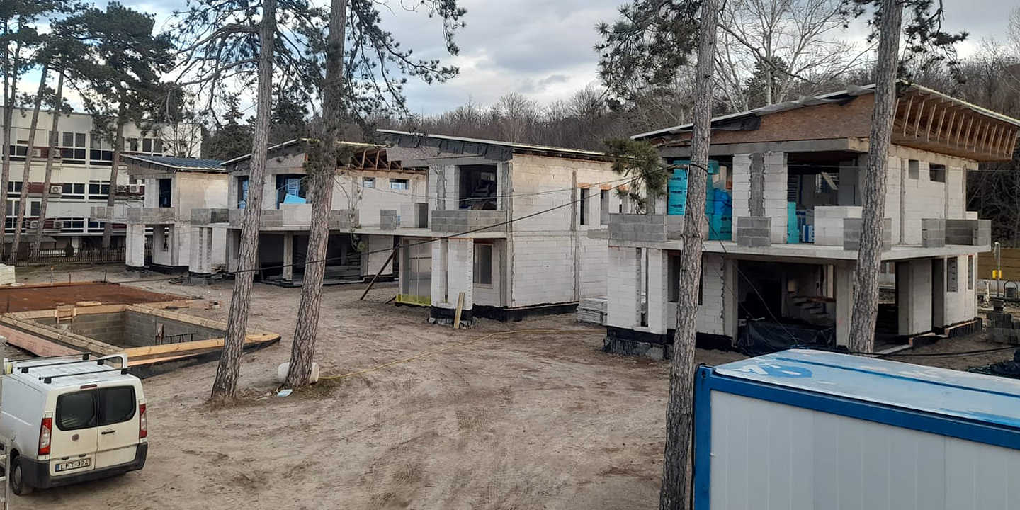 Siófok Aranypartján, közel 7000 m²-es telken épült meg a 16 különálló, modern stílusú, luxus kivitelű családi házból álló lakóegyüttes. A nyaralókomplexumnak is beillő épületek saját garázzsal és közös wellnessrészleggel rendelkeznek.